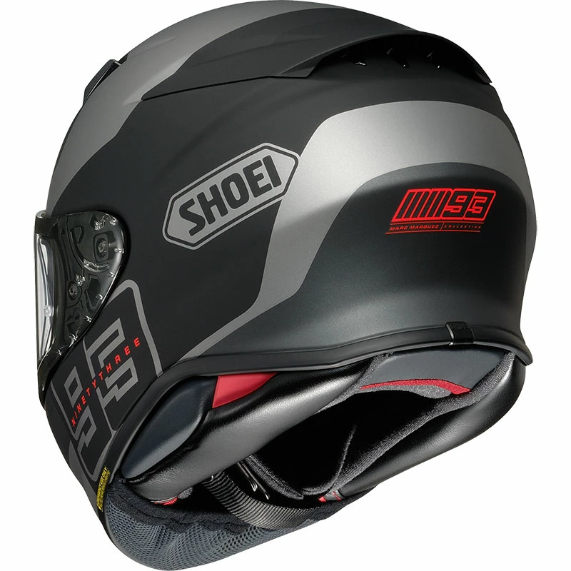 The integrated spoiler in the back of the head stabilises the helmet at higher speeds. The compact and aerodynamically optimised design of the SHOEI NXR2 reduces its wind resistance and lift tendency even further compared to the already low values of the predecessor model. This effectively relieves the rider’s neck muscles and reduces the fatigue effect even on longer rides.